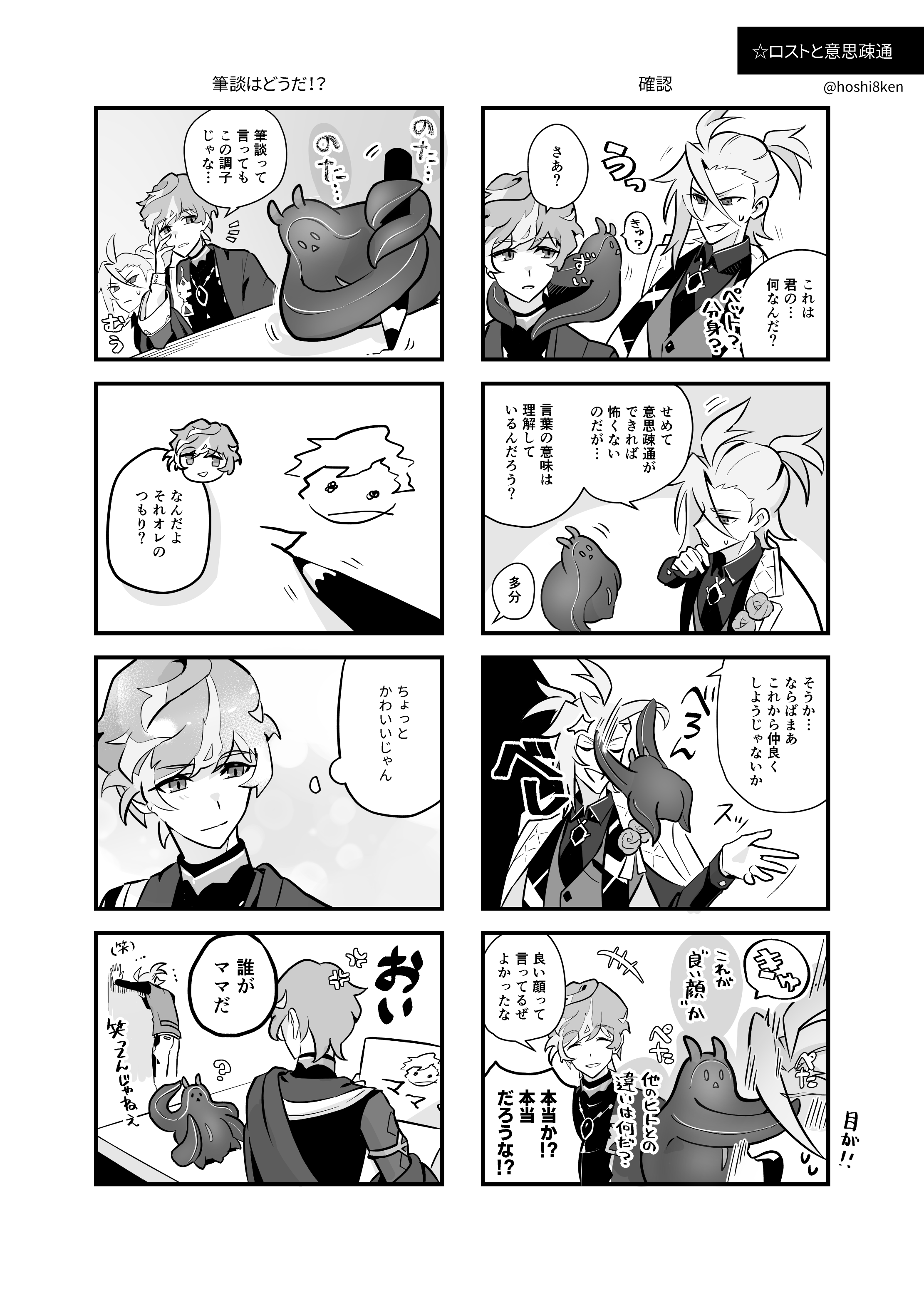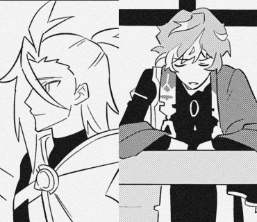 二人の出会い妄想2P/リとヴァルターの小話2P。下の同人誌にオマケとして入れたかったやつ。